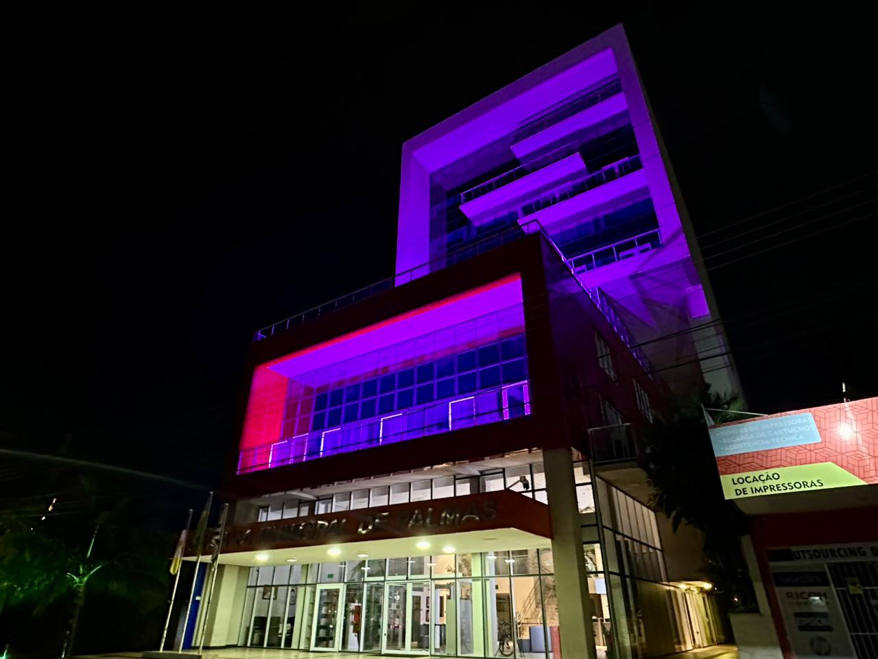 A fachada da Câmara Municipal de Palmas ganhou, neste mês de outubro, uma iluminação especial em tons de rosa, marcando a adesão da Casa de Leis à campanha Outubro Rosa. Com esta iluminação, o prédio do Legislativo servirá como um lembrete visual da importância da prevenção e do diagnóstico precoce do câncer de mama.
